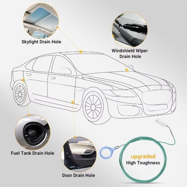 Idéale pour nettoyer les évacuations du toit ouvrant et des essuie-glaces, évitant les fuites coûteuses et les infiltrations d’eau à l’intérieur.