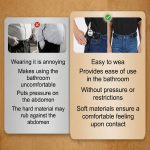 La conception ouverte à l’avant élimine la pression serrée sur votre ventre lorsque vous êtes assis ou au volant.