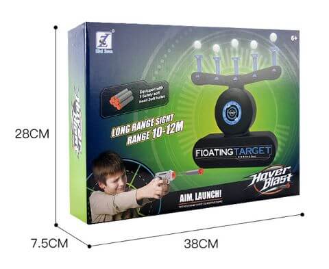 - Contenu de l’emballage : 1 cible Hover Shot, 1 pistolet jouet, 3 balles