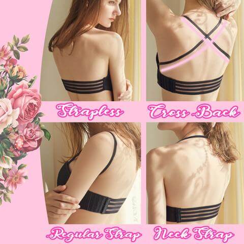 - Quatre façons de le porter : C’est la solution parfaite pour les tops sans bretelles, les dos nu, les décolletés plongeants ou tout autre vêtement laissant entrevoir le soutien-gorge. Le bandeau offre un effet différent selon la tenue que vous portez.